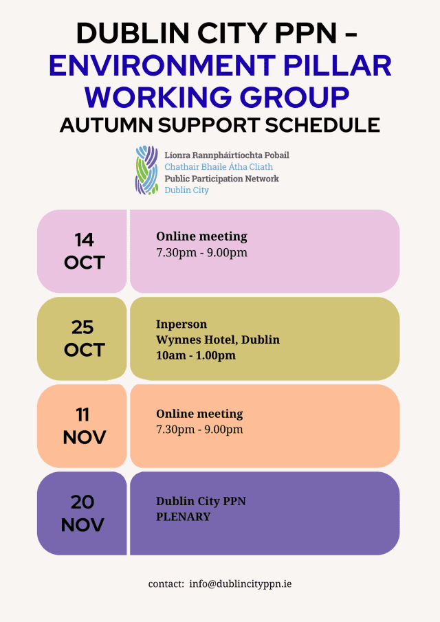 Autumn series of support sessions, for the Environmental Pillar Working Group, with Ellenora Lynch