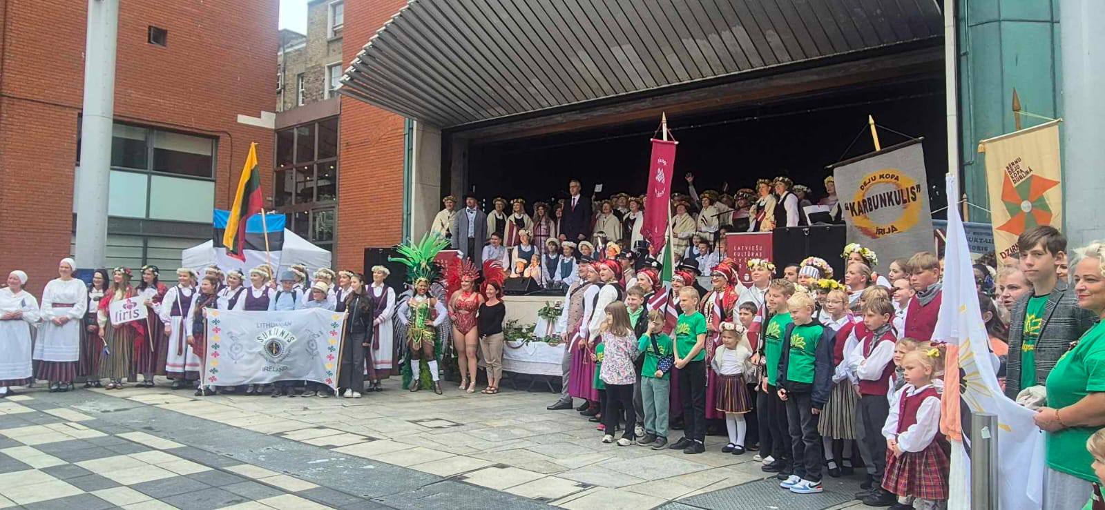 The event featured over 300 participants from Latvian artistic groups and schools across Ireland, individual performers, skilled artisans and food vendors, as well as guests from Estonia, Lithuania, Georgia, Mongolia, Peru, China and a variety of Brazilian and African communities in Ireland.